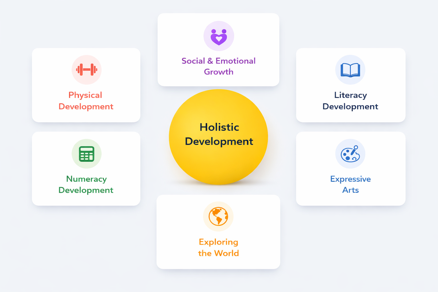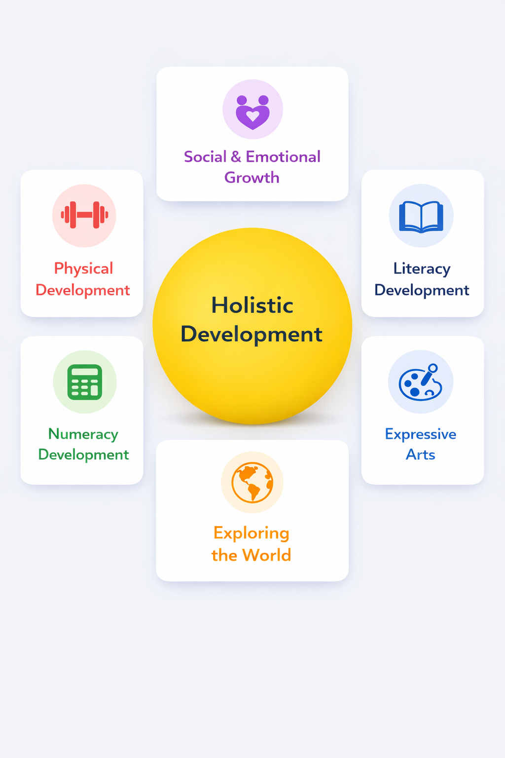 Combining academic learning with real-life skills, this stage equips children with reading, writing, math, teamwork, & problem-solving abilities for a smooth transition to Grade 1.